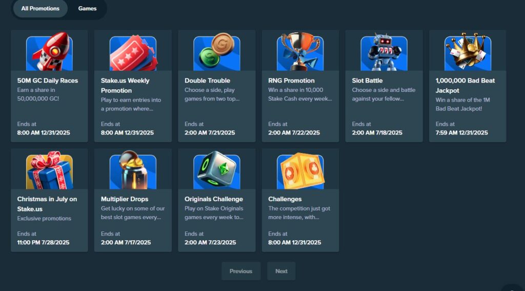 All in all, it’s a pretty standard lineup of social-casino promos, but the variety keeps me clicking back. If you’re new to Stake.us, take a stroll through the promo tab and bookmark your favorites—there’s always something running.